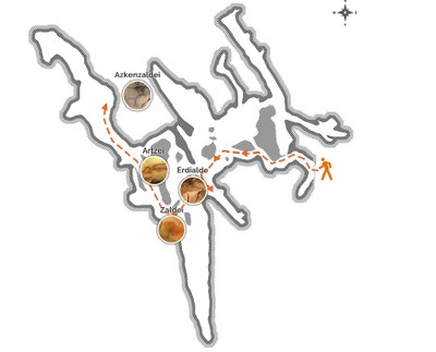 On 1st June the two friends went to the mentioned country house to ask the lady of the house, if there were caves in the hills and the limestone slopes. She said that there were and she showed them where they were, more or less. On 8th June they returned with equipment suitable for examining and carrying out a trial dig of the small cave, which measured 13 metres long and 2 metres wide. While they were preparing to make the dig at the left side of the entrance, Rezabal noticed a small hole on the right side of the entrance where cold air was escaping from.