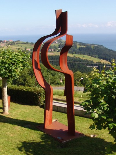 Simon Berasaluce: con esta escultura se rinde homenaje al debarra Simon Berasaluce, autor de las vidrieras de la iglesia de Deba y de muchas iglesias y edificios civiles de Estados Unidos y de diversas ciudades de Europa y Sudamérica.