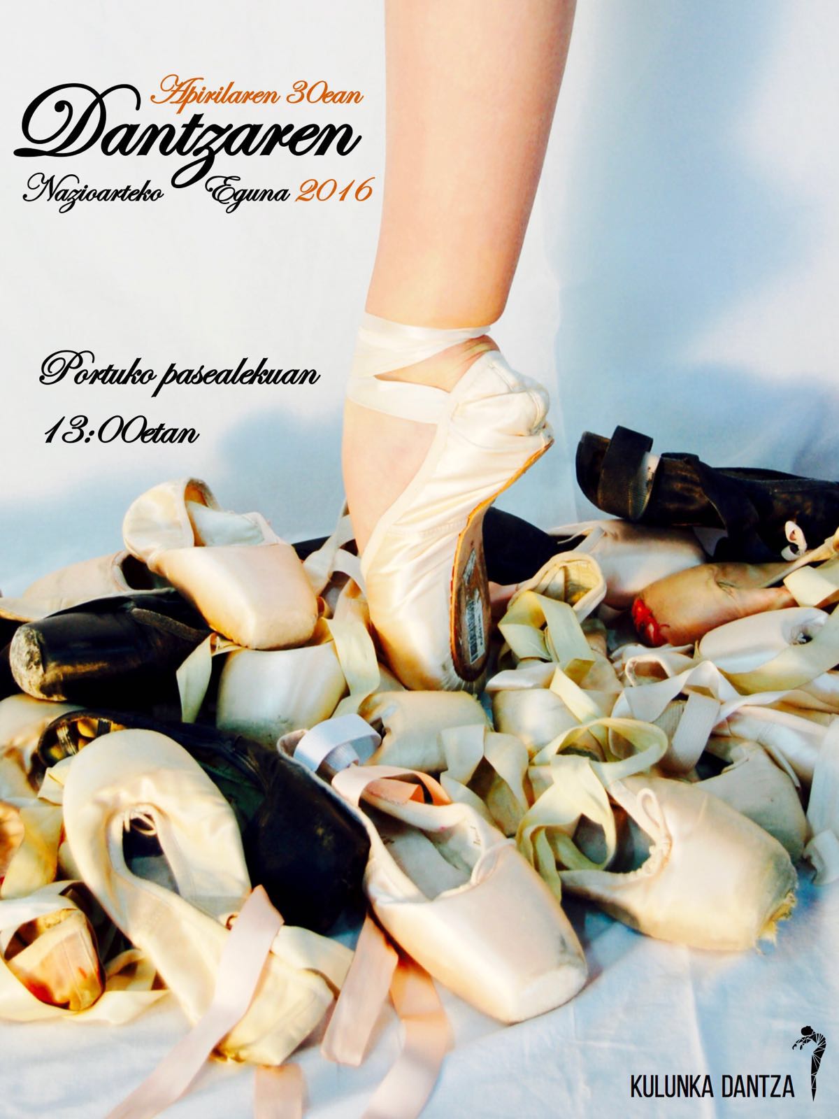 Los y las integrantes del Grupo de Baile Kulunka sacarán este día su habitual clase de barra clásica a la calle. Kulunka Dantza Taldea quiere homenajear la actividad e impulsar la existencia y vivacidad de esta disciplina artística. Asimismo, no quieren dejar de lado la profunda y reivindicativa personalidad de esta celebración.