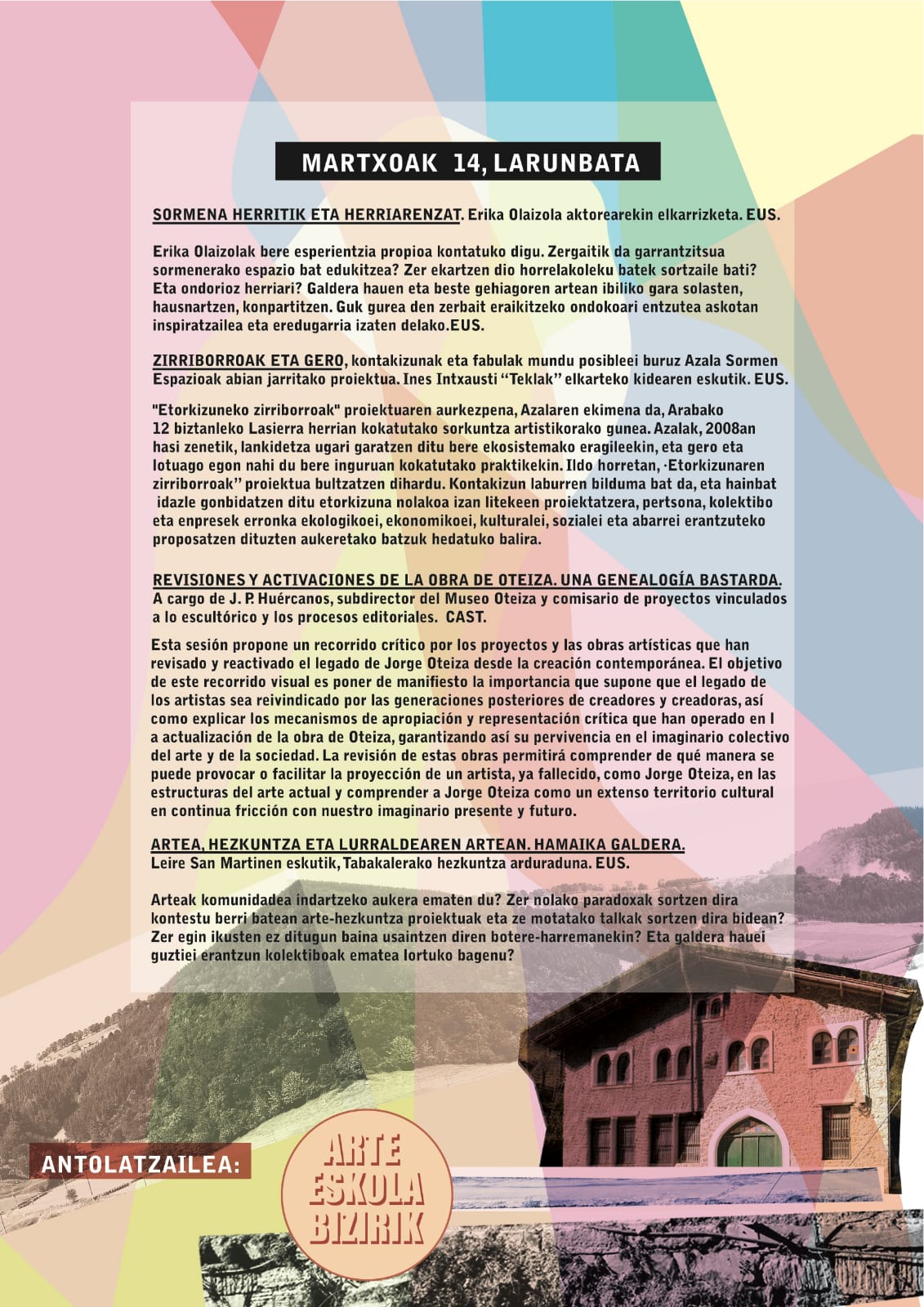 16:00: Leire San Martin. Artea, hezkuntza eta lurraldea, hamaika galdera.