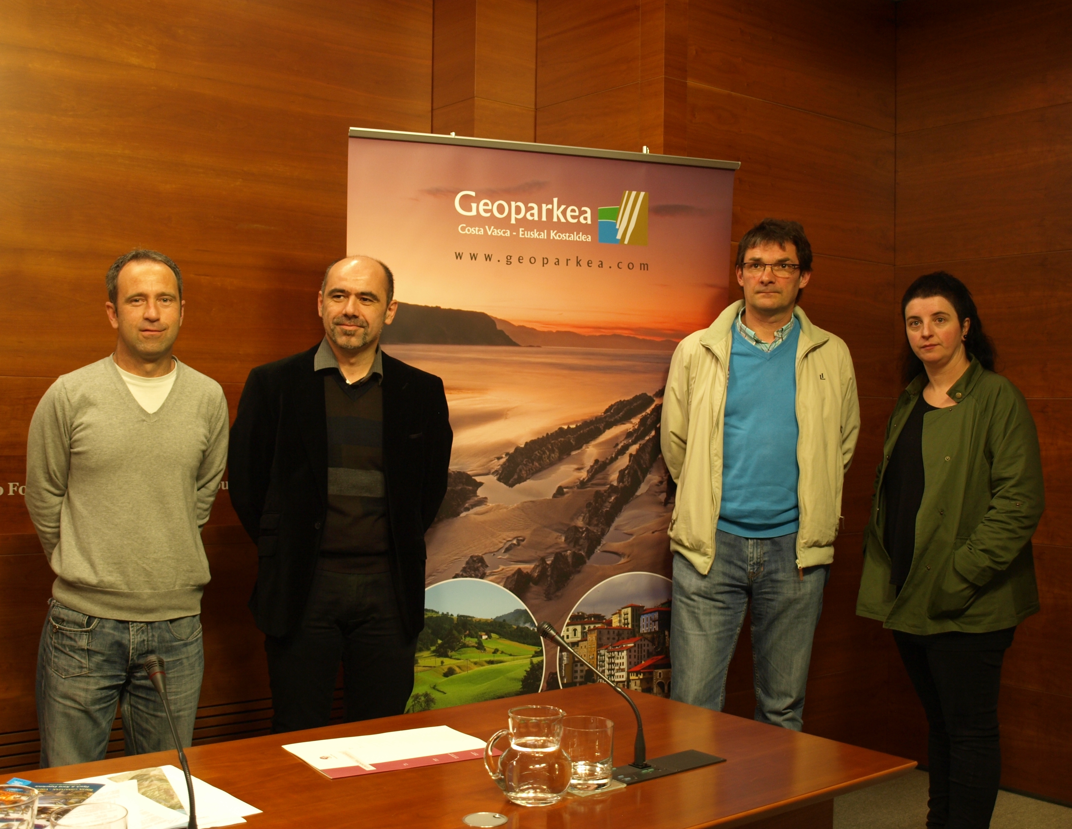 Hoy, jueves, 10 de abril, ha tenido lugar en la Diputación Foral de Gipuzkoa la presentación del nuevo programa de visitas guiadas del Geoparque de la Costa Vasca. En el acto de presentación y rueda de prensa han participado el Diputado de Innovación, Desarrollo Rural y Turismo, Jon Peli Uriguen, el Alcalde de Mutriku y presidente del Geoparque, Joseba Palenzuela, la gerente del Geoparque, Leire Barriuso, y el técnico de medioambiente del Ayto. de Zumaia, Aitor Ibarguengoitia.