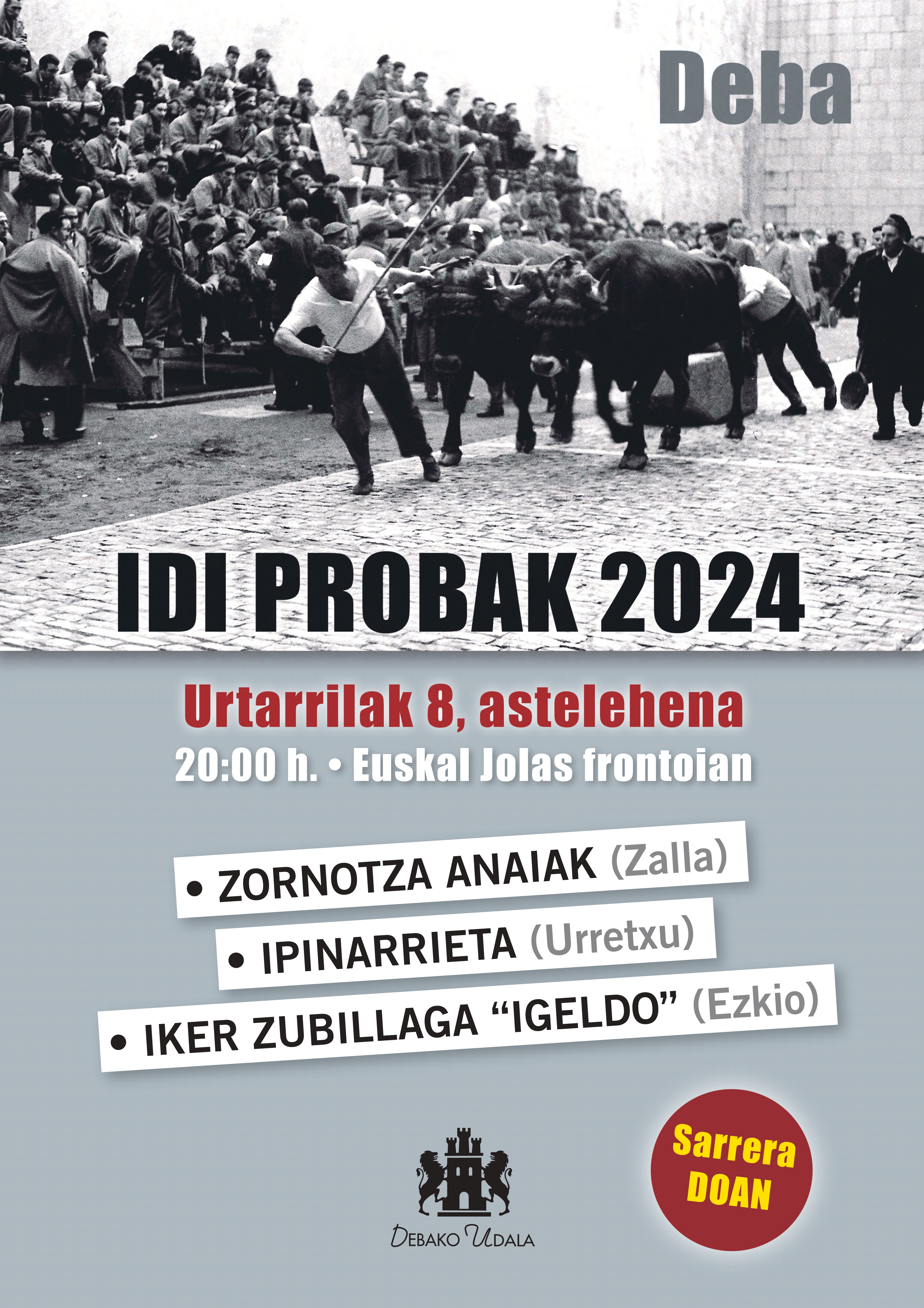 • ‘Idi probak 2024’ se disputará en el frontón Euskal Jolas a partir de las 20:00 horas; la entrada será gratuita. • Entre los participantes están los hermanos Zornotza de Zalla, Ipinarrieta de Urretxu e Iker Zubillaga ‘Igeldo’ de Ezkio.