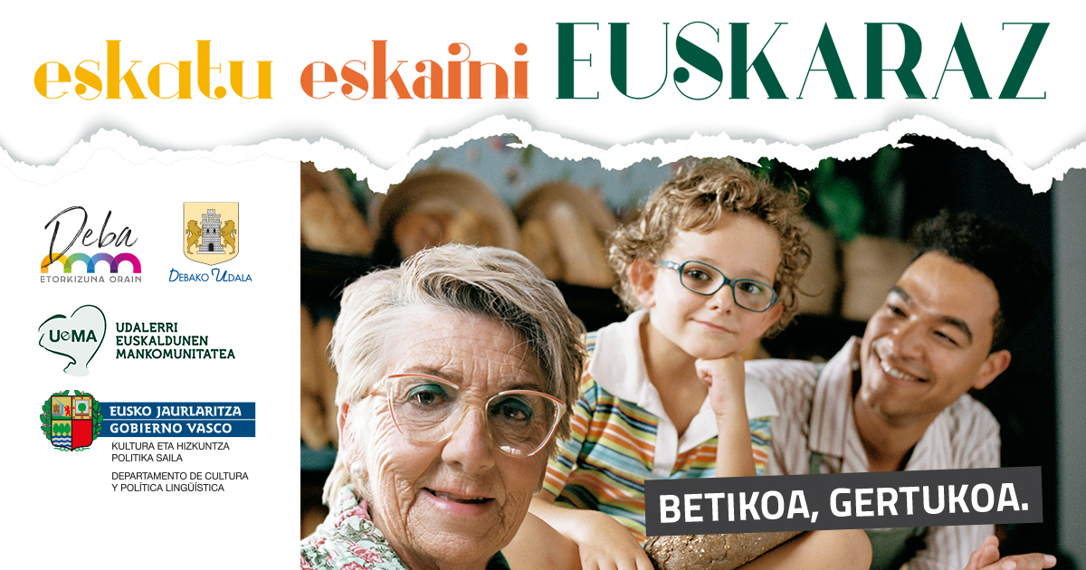 La campaña “Betikoa. Gertukoa. Eskatu euskaraz, eskaini euskaraz” responde a los objetivos del plan de fomento del euskera en el ámbito socioeconómico. Se trata de una campaña que el departamento de Cultura y Política Lingüística del Gobierno Vasco pondrá en marcha para fomentar el euskera en el comercio. La primera campaña se realizó el año pasado y la de este año, siguiendo la estela de la anterior, y siempre basándose en la colaboración, ha estado abierta a todos los ayuntamientos de la Comunidad Autónoma Vasca. En total se han adherido más de 60 ayuntamientos, entre ellos el de Deba.