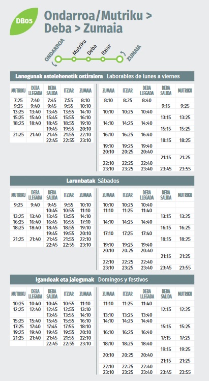 | Donostia - Deba | 05:50 - 20:50 | 06:50 - 20:50 |