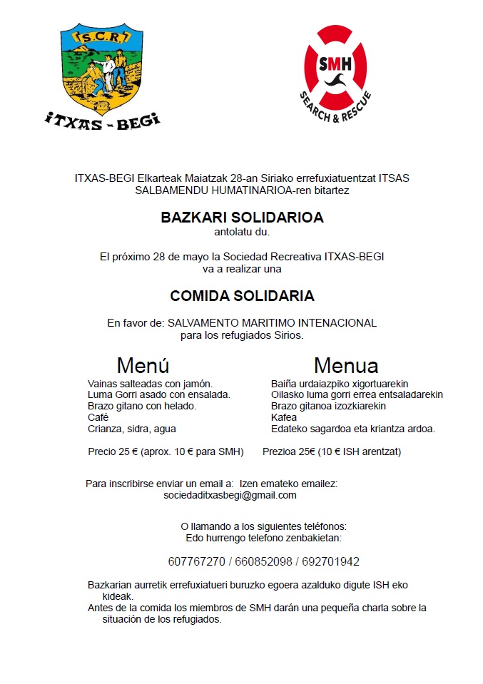 - Siriako errefuxiatuentzat ITSAS SALBAMENDU HUMANITARIOAREN bitartez