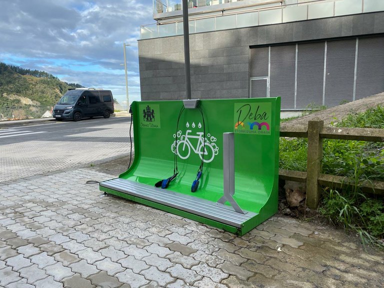 Nahi duten pertsonentzat erabilgarri dago bizikletak garbitzeko gunea, kiroldegi kanpoaldean. Guneak mahuka eta hainbat eskuila ditu, edozeinek erabiltzeko.