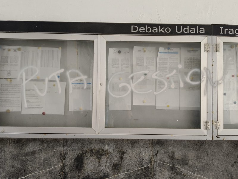 Udaletxeko arkupeetan eta inguruan agertutako pintada iraingarriek udalerriko bizikidetzaren eta errespetu demokratikoaren aurka egiten dutela adierazi du Udalak.