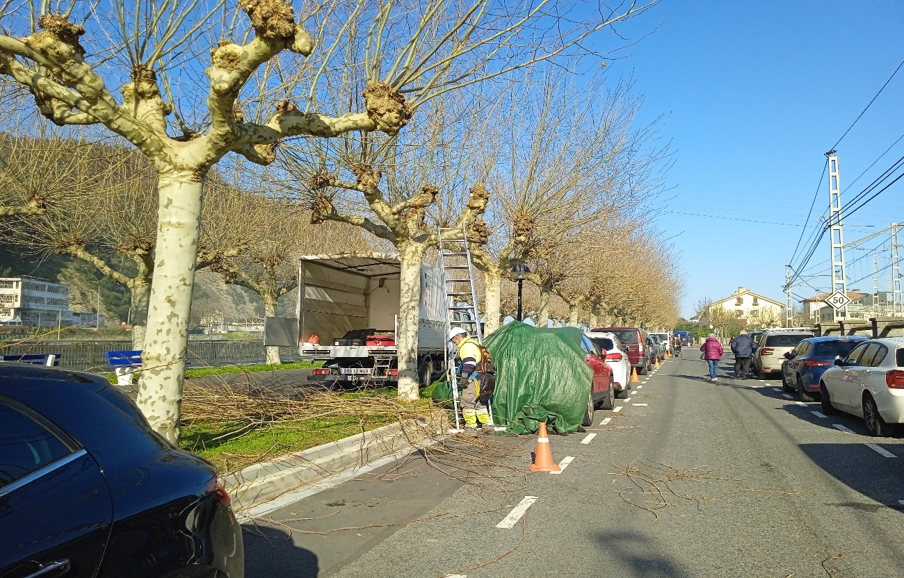 "text": "Gaur, astelehena 29, Arrantzale kaleko errepidearen ondoan dauden zuhaitzak kimatuko dira, marra urdinez markatutako eremuan. Lan horiek errazteko asmoz, Udalak ibilgailuak kale horretatik kentzeko eskatu die bertakoei."
