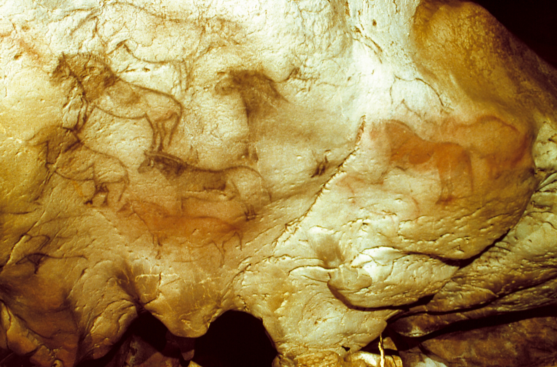 "plaintext": "Haitzuloan, gutxi gorabehera, 70 animalia-irudi daude; 64 margotuak eta 6 grabatuak. Zenbait irudi beltz soilak dira, beste batzuk gorriak eta beste batzuk tinta planoz eginak daude, beltzez eta okrez. Zaldia da gehien ageri den irudia. Bertako zaldi-multzoa arte franko-kantabriarraren irudirik eder eta aberatsenetakoa da, eta espezie horretan, horma-mihise onena. \u00a0Beste abere irudi batzuk ere badira Ekainen: orein eme bat, bi bisonte eta ahuntz txiki bat.",