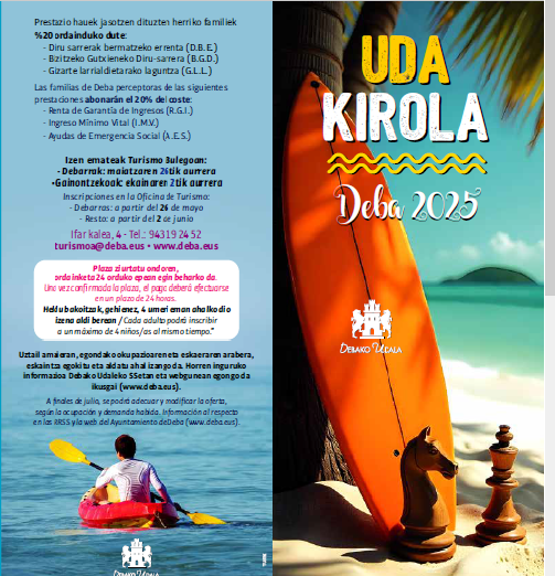 Para más información contactar con la oficina de turismo llamando al teléfono 943 19 24 52 o escribiendo a turismoa@deba.eus.