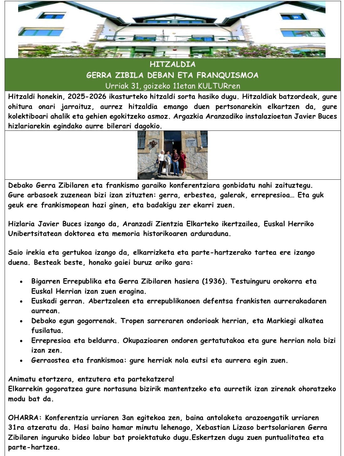 Hitzaldia: "Gerra zibila Deban eta frankismoa"